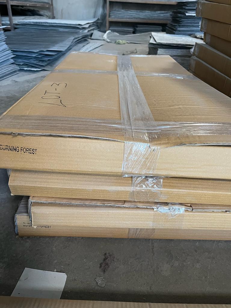 To prevent damage, all of the corrugated boxes are firmly packed inside the small size crate after a filling pattern is established. These sheets are placed directly into the large size crates, but the edges are secured with foam. Foam sheets are utilized in gaps as well to prevent damage to the veneer surfaces.
