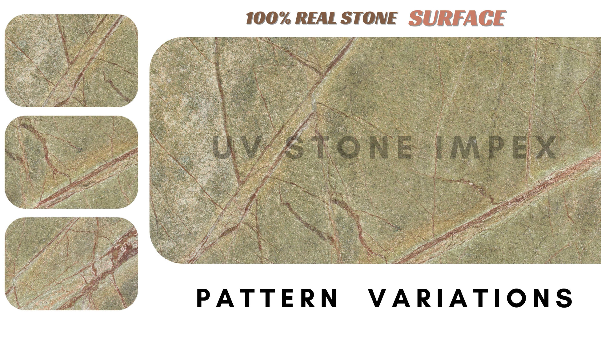 Crafted with meticulous craftsmanship, each veneer captures the essence of Rain Forest Green Marble, with its rich tones and intricate patterns. Their flexibility allows for seamless integration into any design vision, whether you're creating accent walls, fireplace surrounds, or adding character to architectural elements.